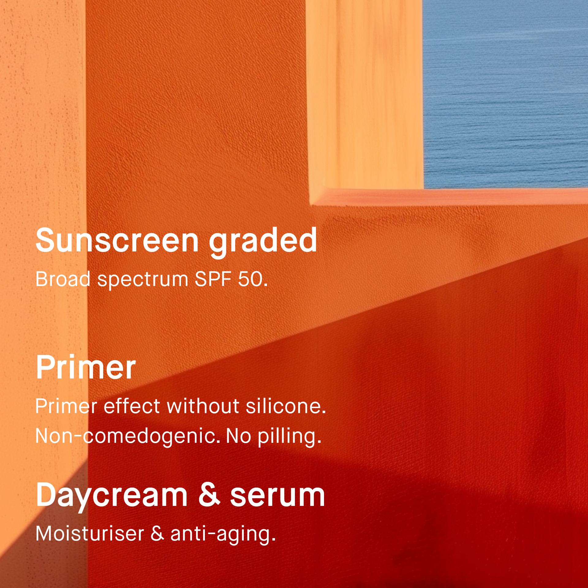- Serum/day cream/primer and sunscreen in one product.